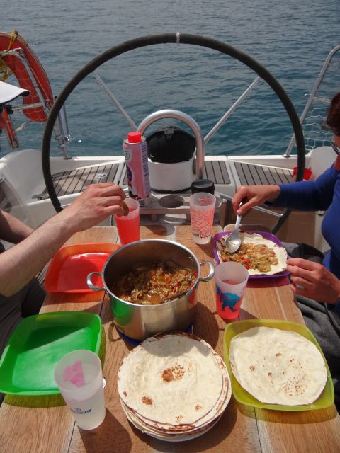 Ola amigos, Après une journée contrastée, hier était riche en actions. On a commencé la journée par essayer "puerto baskets", à savoir se barrer de la marina sans payer ... ben ça a pas marché. On est allé s'ancrer dans la baie suivante où se trouvait déjà un cata ; c'était le promène-couillons du port d'où on venait et il nous a gentilement demandé de payer les 24 !!! euros de la place avant de nous proposer son corps-mort dans la baie si on restait pour la nuit :-) Ensuite on voulait quand même aller à terre pour rendre visite à Béa, donc gonflage d'annexe et embarquement de tout le monde avec affaires et tout le tin-touin. Je pense 30 m qu'on a fait avant que le zodiac ne soit plein d'eau et que tout le monde crie que ses fesses étaient mouillées ! Le petit trou dans le plancher était devenu grand ... épique. Contraint, on s'est rabbatu sur Gran Tarajal, petite ville qui ne paie pas de mine, mais qui a le mérite d'être une vraie ville avec plus de locaux que de touristes ... ouf, ça nous manquait. On apprend l'escale et lisons mieux les guides dorénavant. On a compté les jours encore aux Canaries et avons donc pris le départ ce matin pour Candelaria sur Tenerife en faisant l'impasse sur Gran Canaria. L'île est plus fertile, ce qui devrait nous changer des déserts visités jusqu'ici. Les habitants sont par contre invariablement toujours aussi sympathiques. A dans 30 heures sur Tenerife, becs