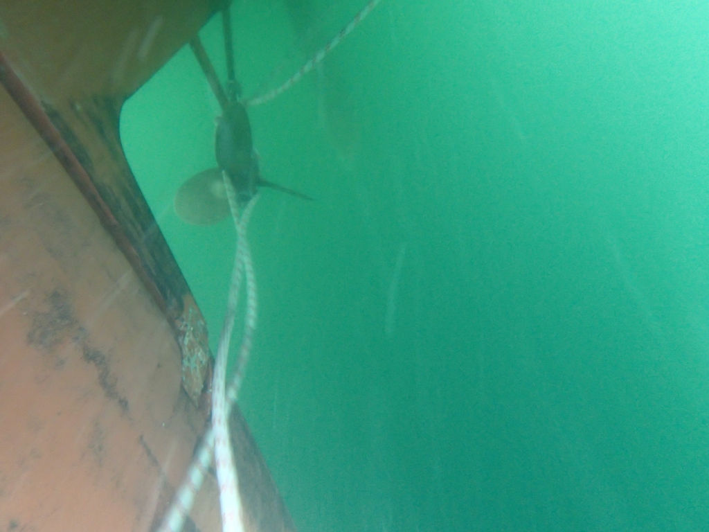 Il s'est avéré qu'il n'en était rien, car au milieu de la petite zone de mouillage, un ponton avec trois gros bateaux venus également s'abriter évite très largement autour de son ancre. On croit avoir trouvé un petit coin juste assez loin de la côte et des bateaux, alors que le vent souffle à 40 noeuds au mouillage !!! On sait que le front passe au milieu de la nuit et que le vent tournera ... effectivement, 2h30 alarme de profondeur, 2.3 n sous la quille, branle-bas de combat. Dans la nuit très dur de se repositionner à la lampe de poche à deviner où est la côte est les autres bateaux tout en surveillant le sondeur. Deux tentatives plus tard on repart au lit. 7h réveil pour partir, mais 7h09 : bonk! merde on a touché la grosse barge qui a carrément fait un tour sur lui-même. Heureusement c'est avec le balcon avant et pas trop fort, juste les filières un peu détendues et le feu de nav' tordu.