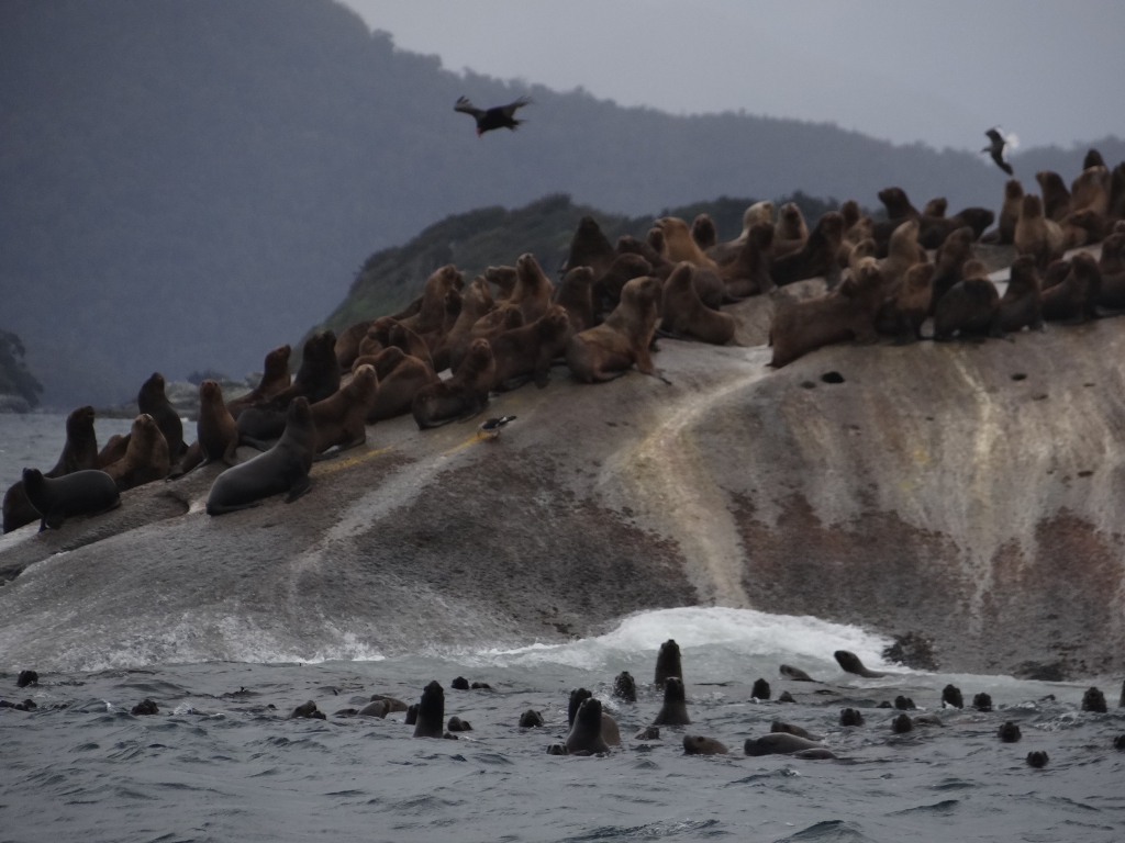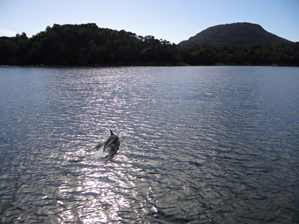 Après ce premier zig, à nouveau un zag vers le continent dans la baie Tictoc dans un petit sanctuaire de faune incroyable. Un mouilllage accroché à une île boisée de 50m2 avec des dauphins qui vous font le spectacle autour du bateau au mouillage, des pingouins qui nichent sous les arbres de la forêt environnante et qu'on entend toute la nuit, des loutres de mer qui se chamaillent dans la baie, ... trop beau pour être vrai, mais vrai quand même !