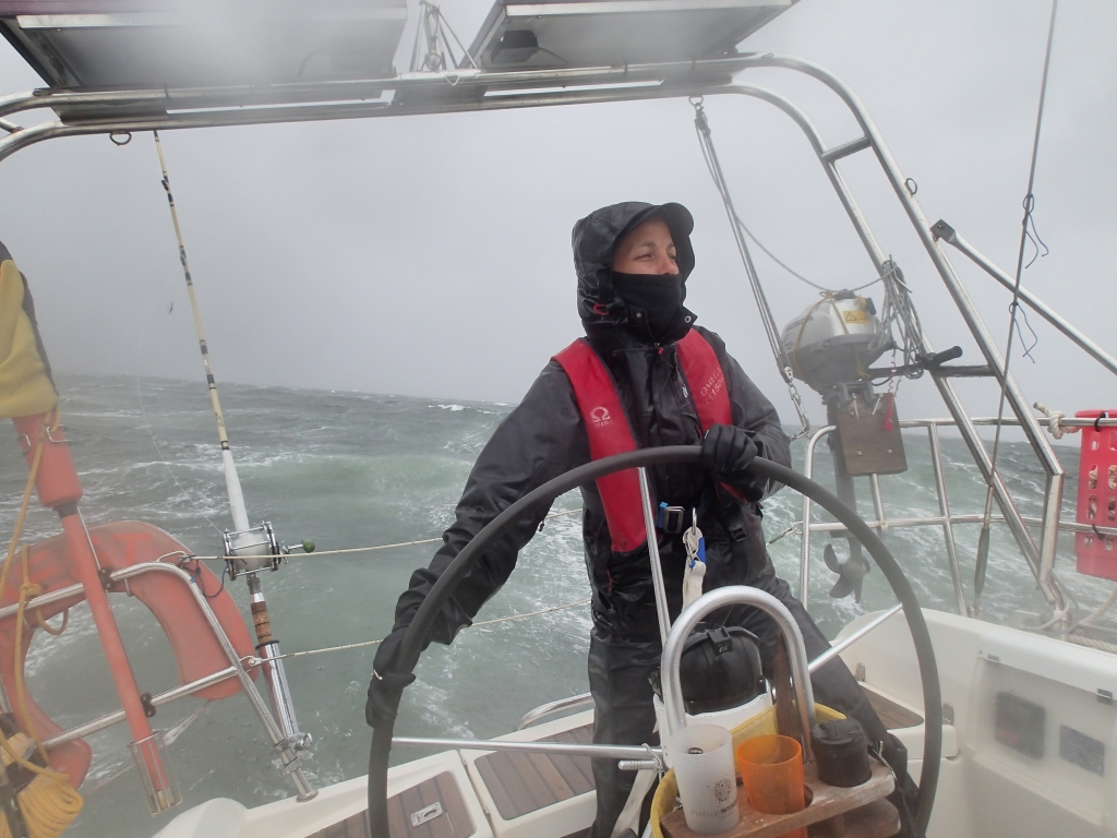 Ce jour là n'était pas le meilleur, car dans le ciel de traine, les raffales passent de 8 à 30 neouds en 5 secondes, difficile de choisir quelles voiles hisser. Dans une tumulte, on réussit à perdre les écoutes du génois qui vont se mettre dans l'hélice ... On se rabat sur un mouillage sous le vent car sans moteur il faut mouiller à la voile et donc s'assurer du vent. Ca s'est bien passé et le skipper a eu droit à un petit bain dans l'eau à 15°C. Le moteur n'a rien et on repartira après une bonne nuit de sommeil :-)