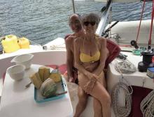 Sylvie et Fabienne font du kayak, du snorkeling, du longe-côte les pieds dans le sable….de bonnes recettes et, rendons leur hommage, le “plaisir” inépuisable du nettoyage des lignes de flottaison et de la chasse à la rouille.