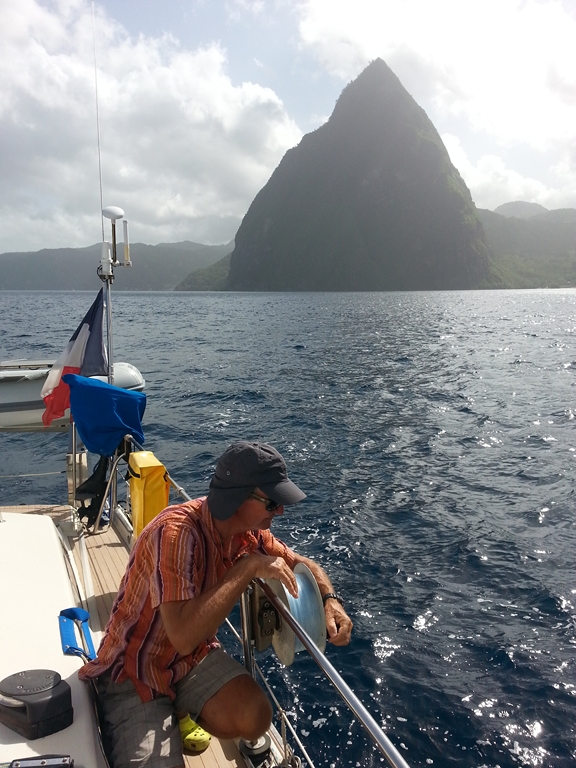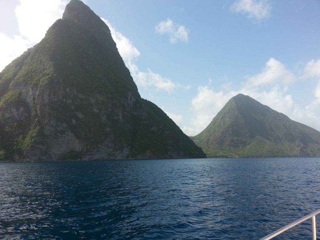 Nous quittons notre mouillage de Ste LUCIA à Soufrière bay. Ici le passage devant les 2 pitons de Ste LUCIA.
