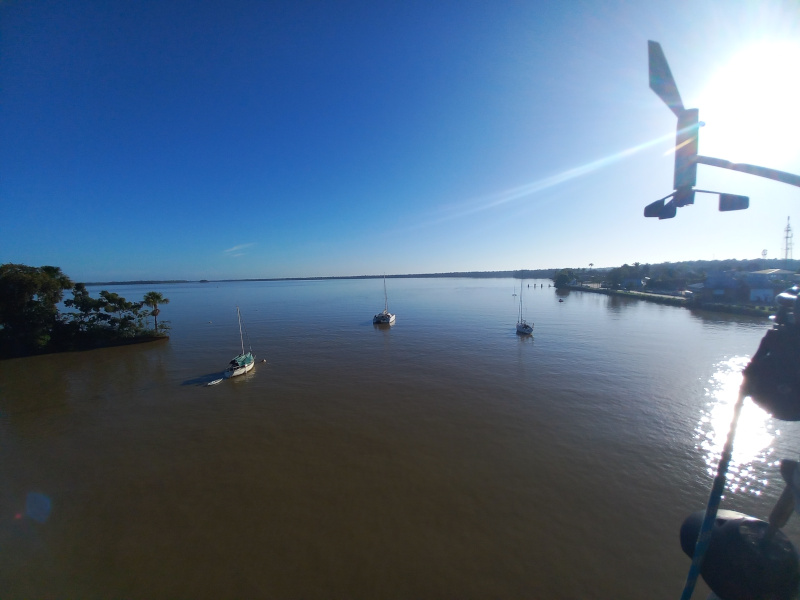 La sortie du fleuve se révèle plus compliquée que prévu : très peu de fond, et cette fois, le vent et le courant sont contraires.