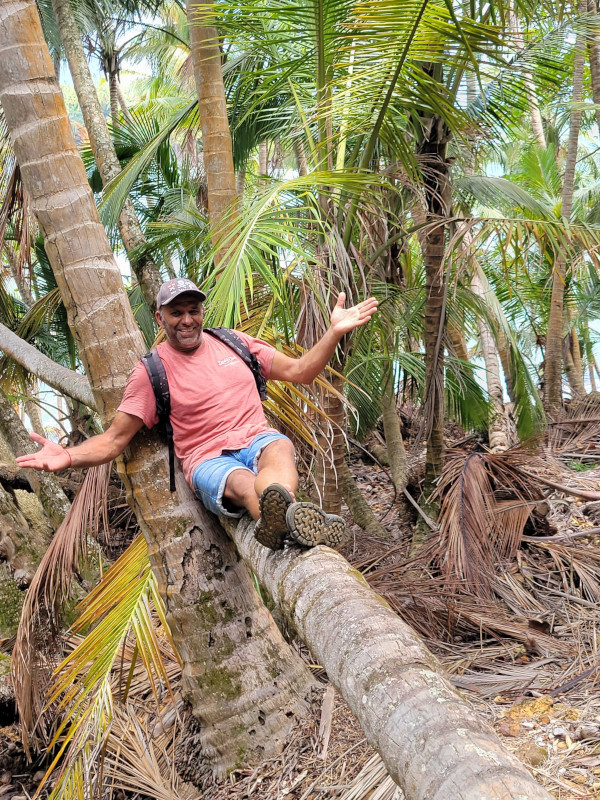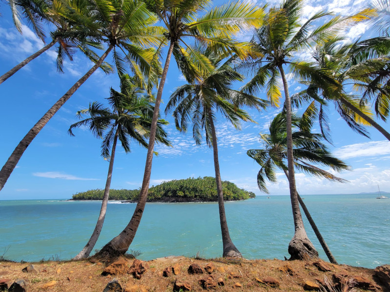 Nous jetons l’ancre dans la baie des Cocotiers, aux îles du Salut.