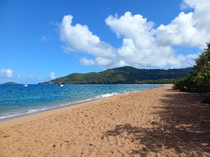 Je me replie d’abord dans la grande baie de Cane Garden (abri du sud), où je trouve quand même un bel endroit pour mon ancre.