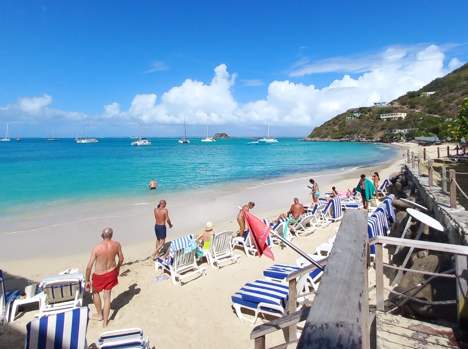 En revanche, Saint-Barth est bondée : yachts énormes et forêt de mâts partout. Je préfère finalement m’arrêter à l’îlot Fourchu :