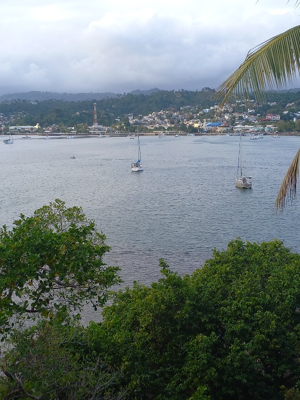 Le temps s’éclaircit quand je rentre dans la petite baie de Santa Bárbara de Samaná.