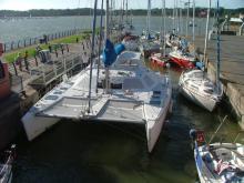 Nous voulons trouver des marins cherchant un bateau et pas une villa. Notre catamaran est en bois epoxy , nous sommes partis 10 ans avec lui sans aucun soucis, c'est l'ancêtre des Lagoon, long: 14,63 largeur 8,40. Pour plus de détails 0297580154 Mail guylebouteiller@orange.fr. Visible à Arzal. Cordialement. Guy Le Bouteiller ci-joint photo